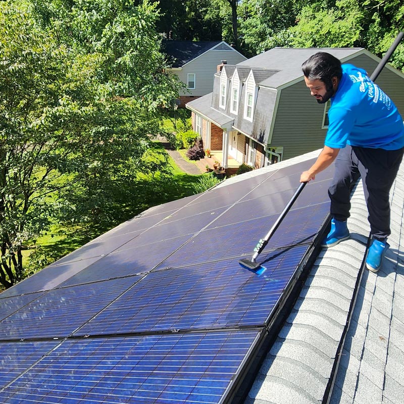 Maximize your solar panel performance with our solar panel cleaning service. Safe for all panels. We use de-ionized water and water-fed pole with soft brushes to remove the accumulation of dirt and contaminants on panels.