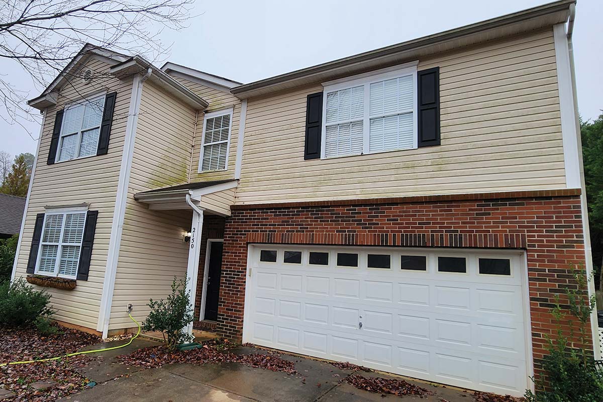 Soft washing is the process of lowering the pressure (PSI) of a pressure washer, or using low pressure pumps, to apply water and cleaning solutions to exterior surfaces. Soft washing is gentle on exterior surfaces while highly effective at removing tough stains caused by bacterial and fungal growths such as mildew and algae. Our technicians use the best soft washing equipment and professional-grade cleaning solutions carefully mixed at the correct potency to achieve the best cleaning results for our customers. While our cleaning solutions are biodegradable, our technicians follow our company vegetation protection protocol to ensure all plants are safe during the washing process.
